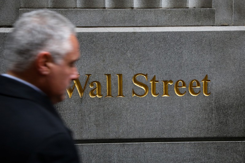 A man walks on Wall St. in the financial district in New York City, U.S., December 13, 2018. REUTERS/Brendan McDermid
